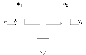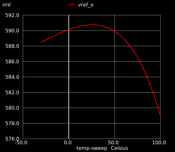 Our methodology to implement the first-order delta-sigma modulator was to verifiy the functionality of each subcircuit and then implement this in a complete circuit. We first started by substituting the switches of the SC-Integrator by pmos- and nmos-FETs and then continued with the integrator which was implemented by an inverter and the integrating capacitor. Then we added the comparator and latching circuit after the integrator. After this was implemented we added our bandgap voltage-reference and the clock splitter. We then connected the four phases of our clock splitter to the FETs of the SC-Integrator as well as to the clocked-comparator. Unfortunately the first order idsm does not work yet and we suspect that there is a problem with the Sample- and Hold-Stage or with the SC-Integrator.