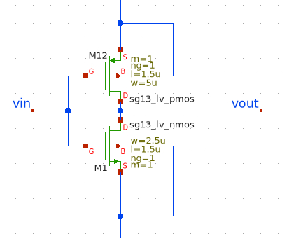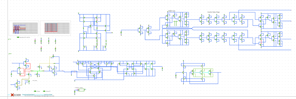 Starting from this we implemented the inverters and nand gates with discrete MOSFETs and designed a testbench in xschem: