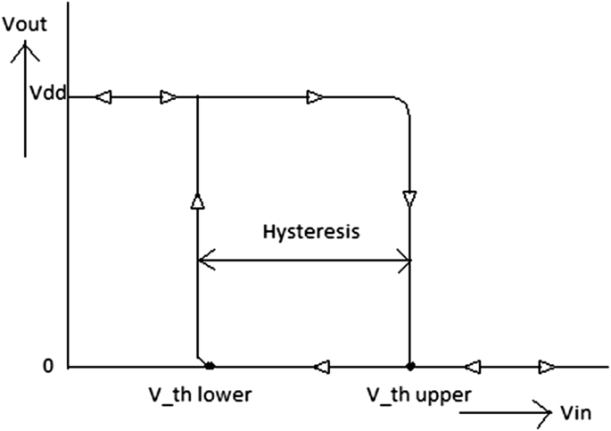 Whenever the input signal of the schmitt-trigger crosses a set limit the output is pulled to a high state. And if the input signal falls below a certain threshold the output signal goes low again. This transfer function is visualizes in this graph: