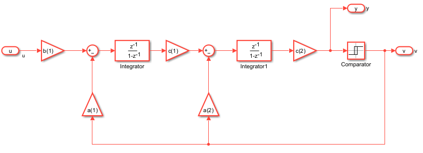Figure 6.2 depicts the time-domain representation of the modulator. It consists of a difference amplifier, an integrator, and a comparator, with a feedback loop incorporating a 1-bit DAC.