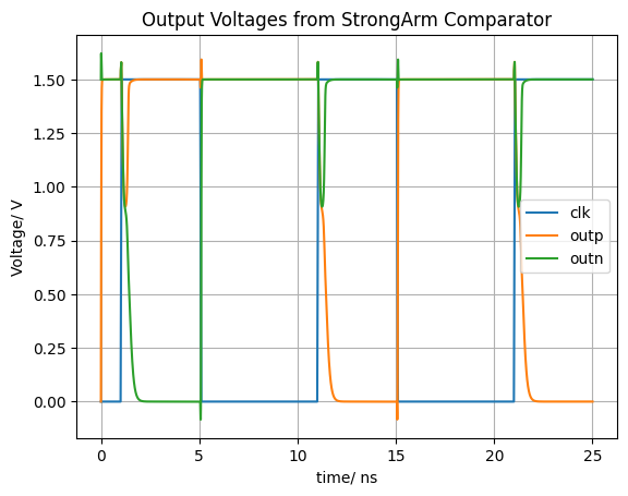 The output “out2dff” can now be forwarded to a d-flip-flop, which most comparator designs for ADCs would utilize to gain the “final” clk-controlled digitized output sample.