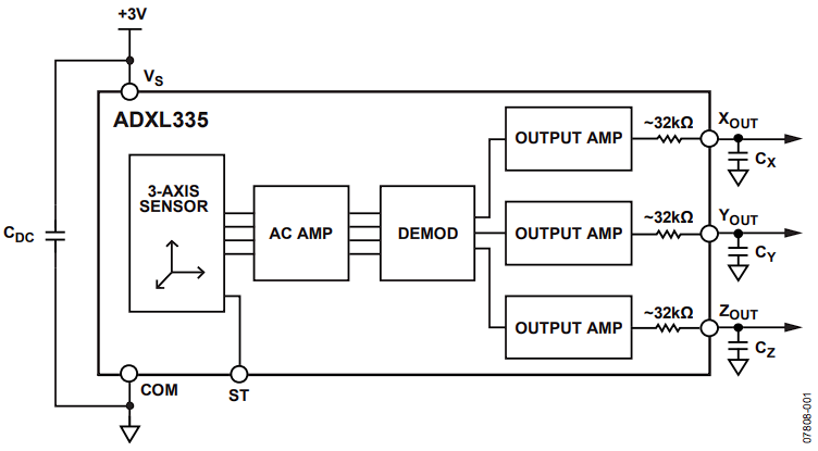 The accelerometer is a specific example of a micro electro-mechanical system (MEMS) used for the purpuse of sensing. This in essence utilizes capacitive Accelerometer, where the plates of that capacitor are within the internal structure, which allows for varying distances of the plates (or potentially “fingers”) resulting in a varying capacitance given an acceleration. The analog change in capacitance is what we will ultimately need to consider when it comes to system interfacing. (Fraden 2015)