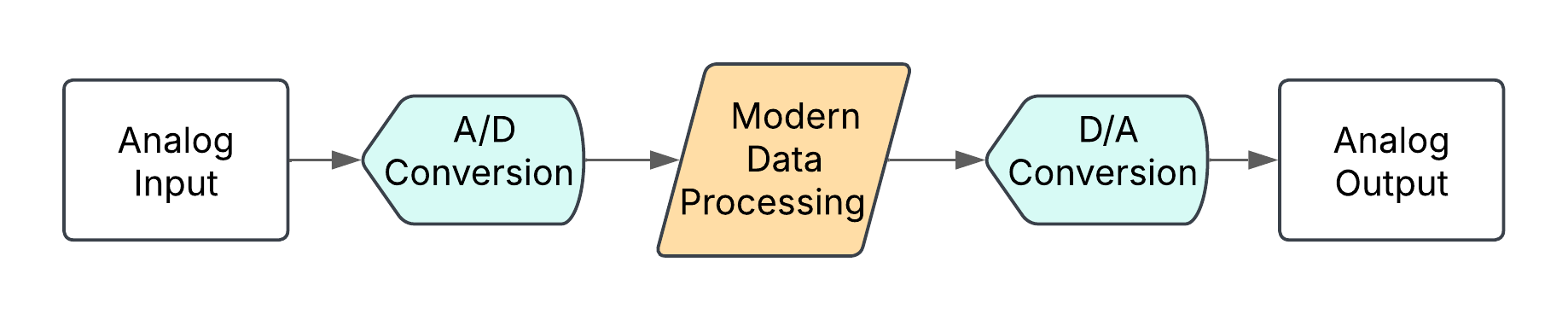 flowchart LR A[Anti-Alias Filtering] --> B[Sampling] B --> C[Quantization] C --> D[Digital Filtering]